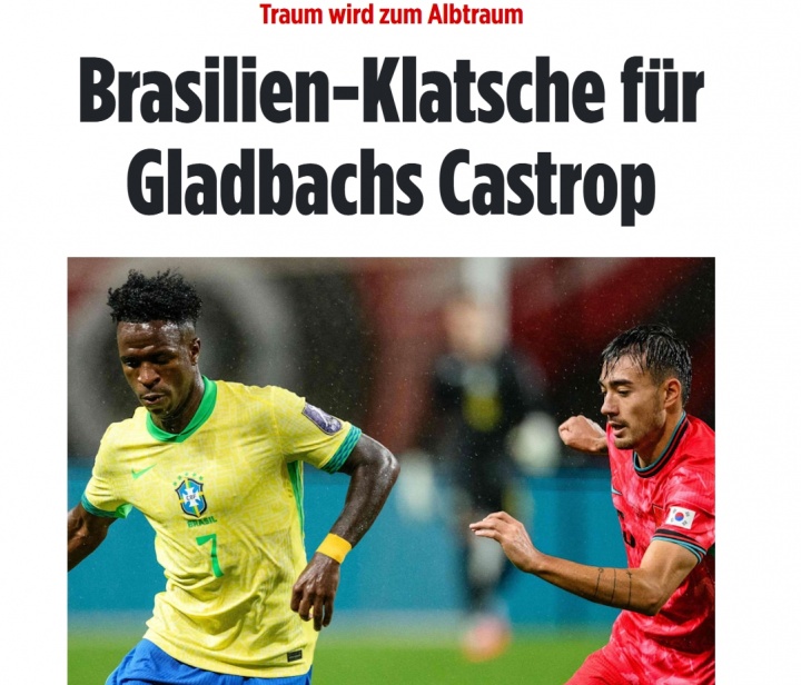 《图片报》以《好意思梦变恶梦:巴西队给门兴队的卡斯特罗普千里重一击》为题写说念:“门兴中场卡斯特罗普经历了好多孩子在街头足球或俱乐部青训时就梦思的场景:代表国度队参加对阵巴西队的比赛!