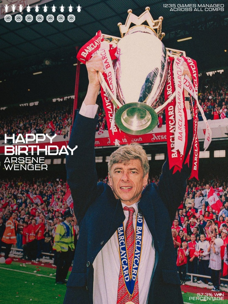 10月22日讯 今天是阿森纳功勋主帅温格的76岁寿辰,阿森纳官方为他奉上祝愿。