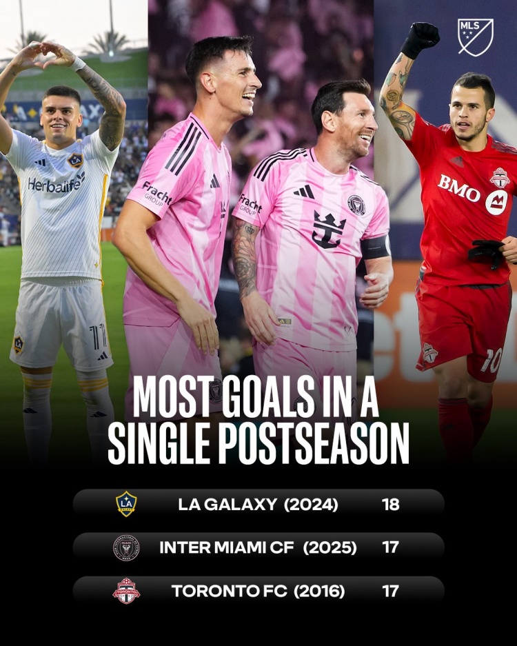 据好意思职联官方统计,迈阿密海外本赛季好意思职联5场季后赛打进17球,好意思职联历史单届季后赛进球并排第二多,差1球追平洛杉矶星河保合手的记载。