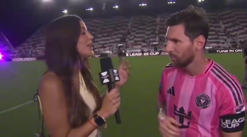 08月28日讯 定约杯半决赛,梅西梅开二度,迈阿密海外淘汰奥兰多城晋级决赛。赛后梅西收受了现场apple tv记者Antonella González的采访。