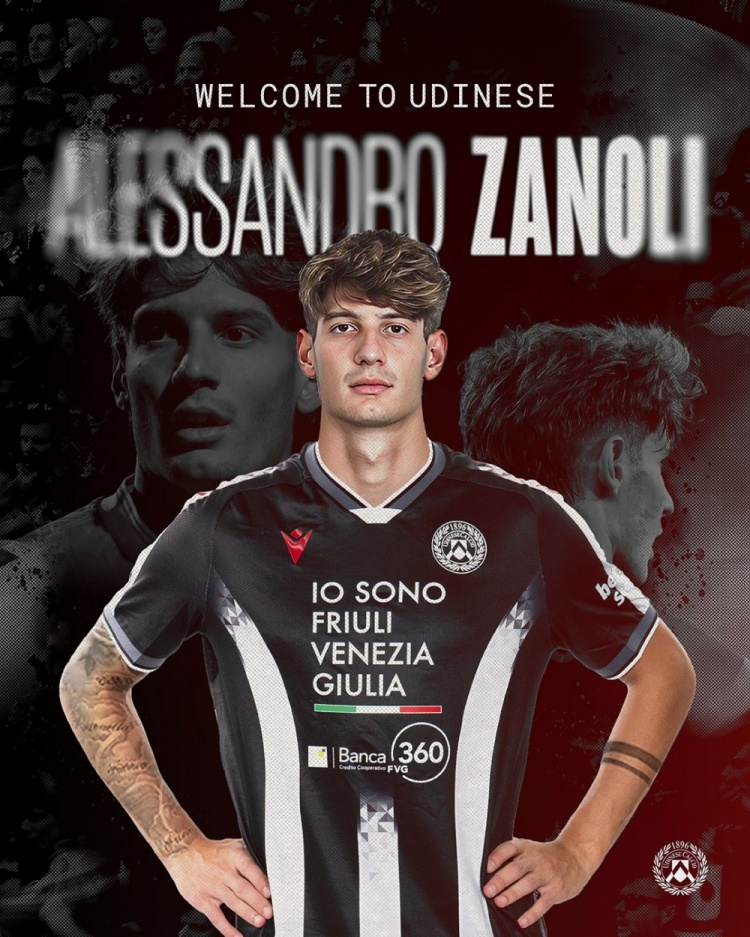 官方:24岁后卫扎诺利负责加盟乌迪内斯,形势为租赁+强制买断
