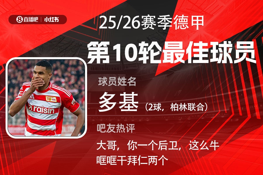 X小红书|德甲第10轮最好:后卫12场6球!多基终直率仁记录