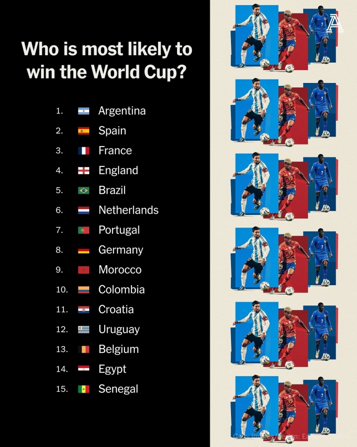 目前恰是本领——当系数这个词赛事的分组行将呈目前咱们咫尺时,咱们不错运行崇敬念念根究竟哪支球队最有可能捧杯了。为此,咱们完成了一项相等广泛的职责:把系数64支(潜在)参赛球队从第1名排到第64名,评估它们在7月19日于新泽西站上领奖台的可能性。