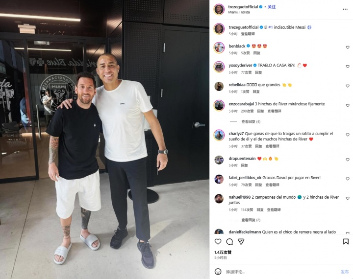 11月08日讯 法国传闻球星特雷泽盖在个东谈主社媒晒出与梅西在迈阿密的合影。