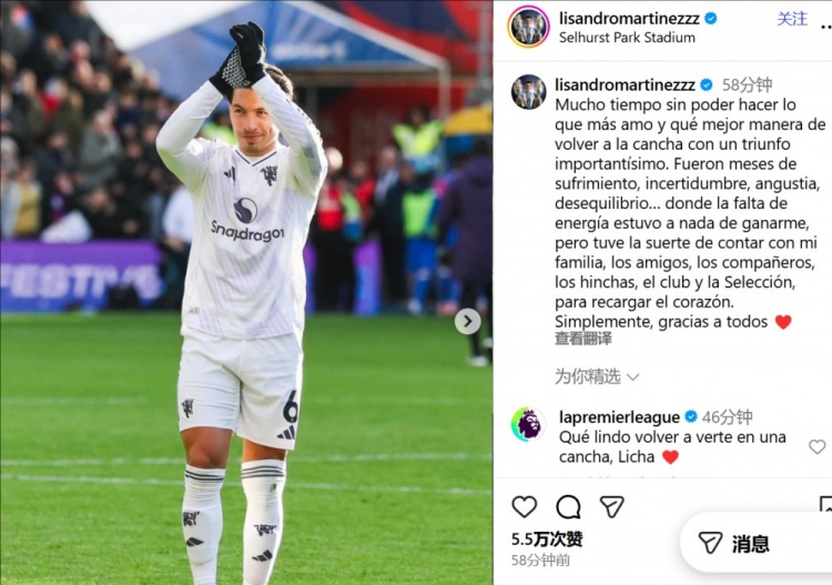 “这几个月充满了灾祸、不细则、暴躁和失衡……能量的缺少险些让我败下阵来,但我侥幸地领有家东说念主、一又友、队友、球迷、俱乐部和国度队的相沿,让我约略再行充满力量。浅薄地说,感谢统共东说念主。”