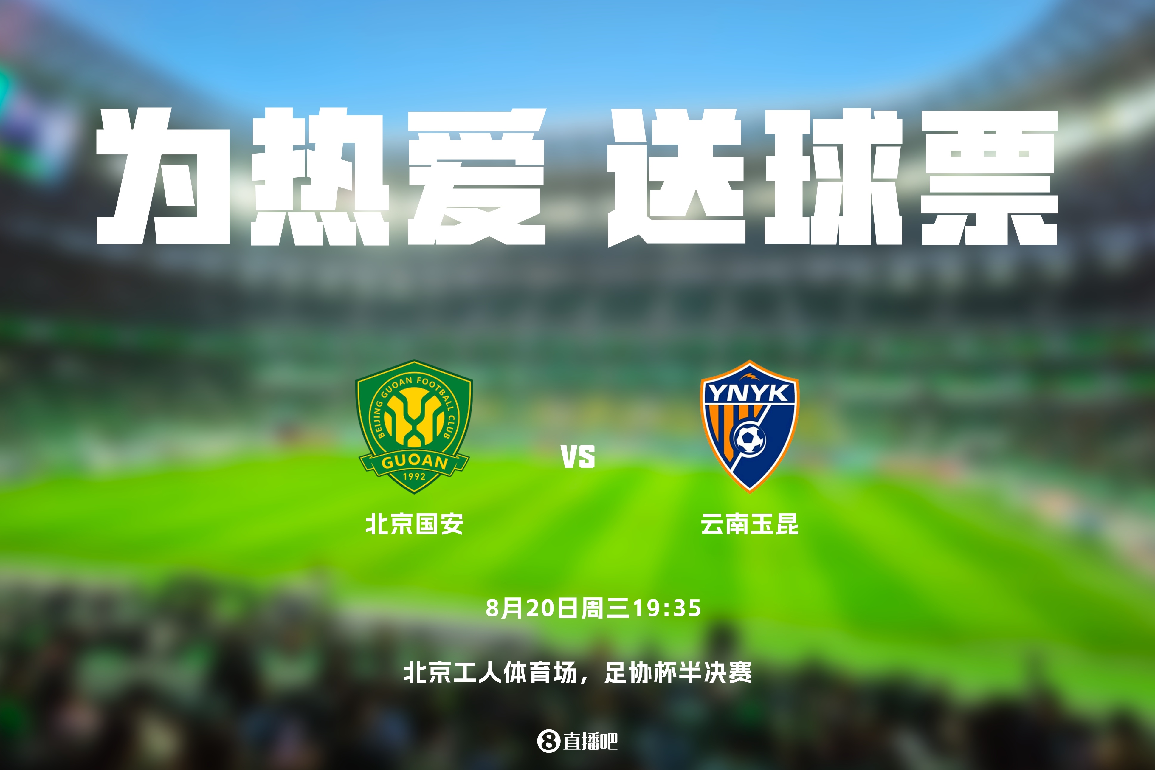 小吧福利站|🎁北京国安vs云南玉昆,谁能进决赛?小吧送6张门票