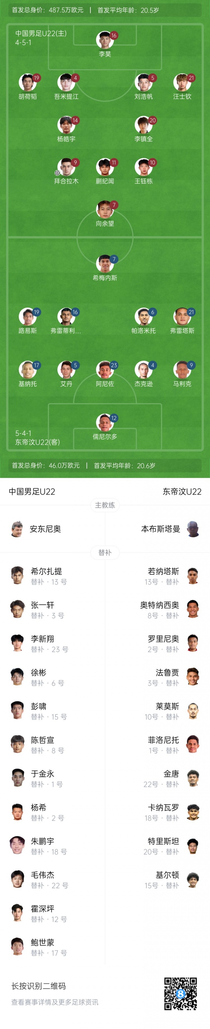 半场-U22男足2-0东帝汶 王钰栋破门+师法姆巴佩庆祝 拜合拉木立功