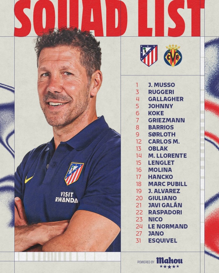 马竞vs黄潜名单:格列兹曼、阿尔瓦雷斯、尼古拉斯-冈萨雷斯在列