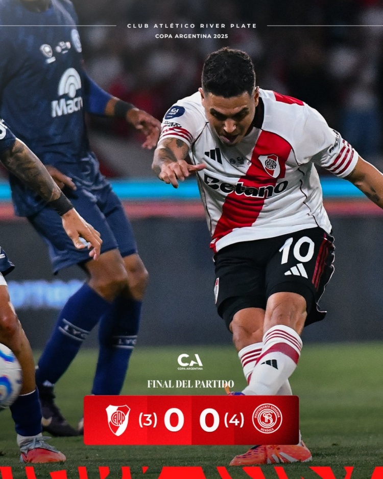 10月25日讯 今天进行的阿根廷杯半决赛,河床通例时分0-0战平门多萨零丁,最终河床点球大战3-4落败无缘决赛。门多萨零丁队史初次晋级阿根廷杯决赛,将对阵阿根廷后生东谈主。