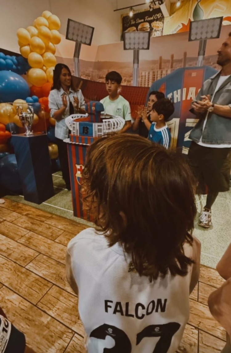 从网精熟传的像片来看,梅西一家举办了巴萨主题派对,为蒂亚戈庆祝13岁诞辰。
