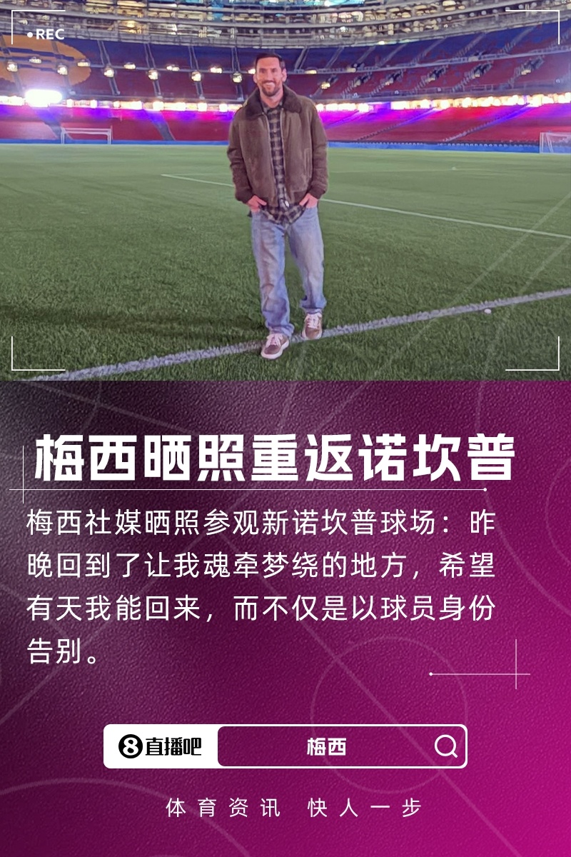 念旧!梅西晒照参不雅新诺坎普:昨晚我回到了让我魂牵梦绕的场所