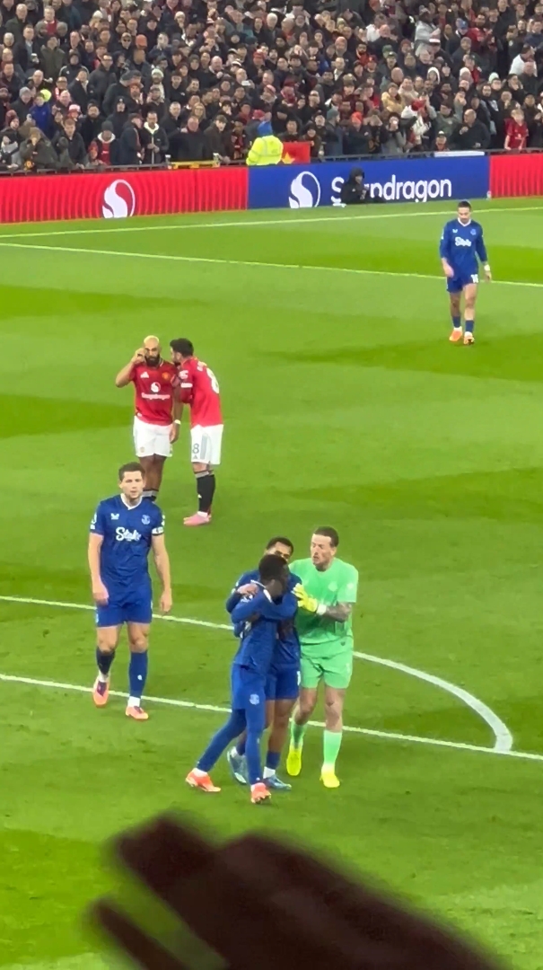 盖耶染红后样子兴奋喋喋不断,皮克福德和恩迪亚耶抱住安抚,盖耶仍在挥拳似乎要打东说念主。
