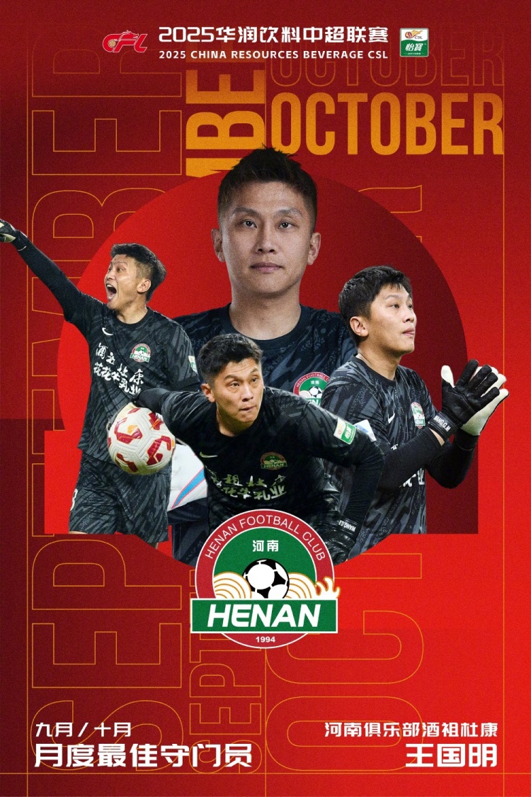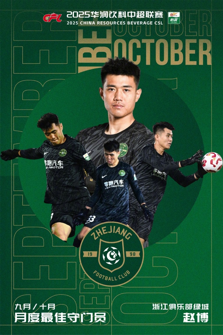 11月26日讯 中超官方公布了9月、10月最好守门员东谈主选,浙江队门将赵博与河南队门将王国明并排当选。