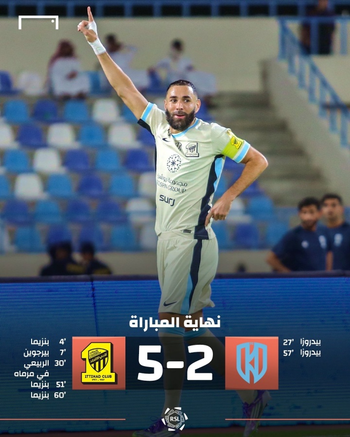 🐯本泽虎!本泽马沙特联首轮献艺帽子戏法,吉达集合5-2大捷