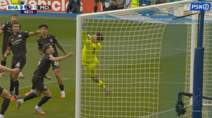 神扑难阻输球!特拉福德急速反馈+舒展扑救,退却布莱顿变线射门