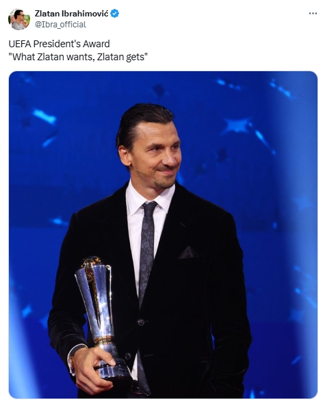 08月29日讯 在欧足联抽签典礼上,瑞典传闻球星兹拉坦-伊布拉希莫维奇获颁欧足联主席奖,随后伊布在社媒发布获奖感言。